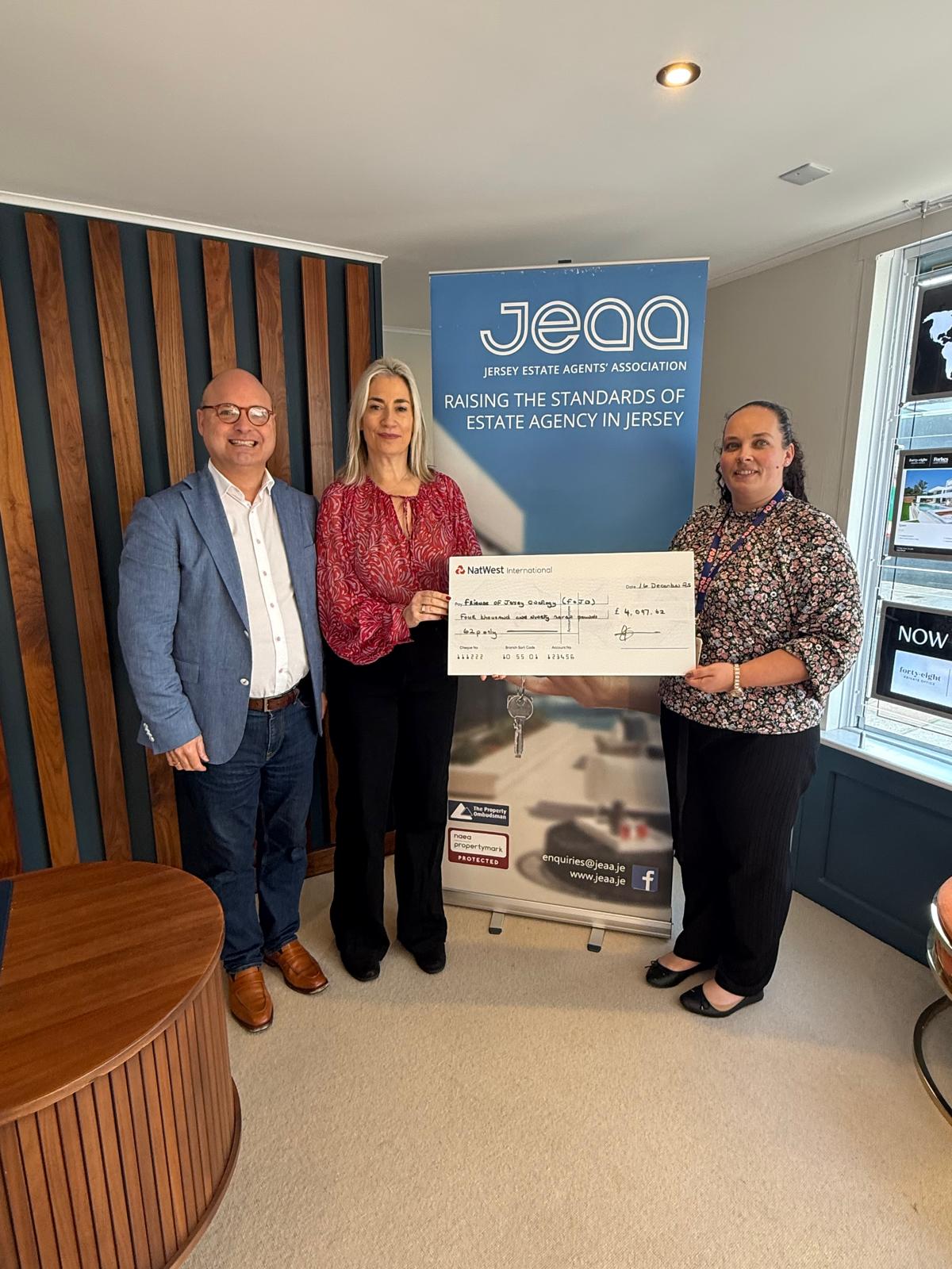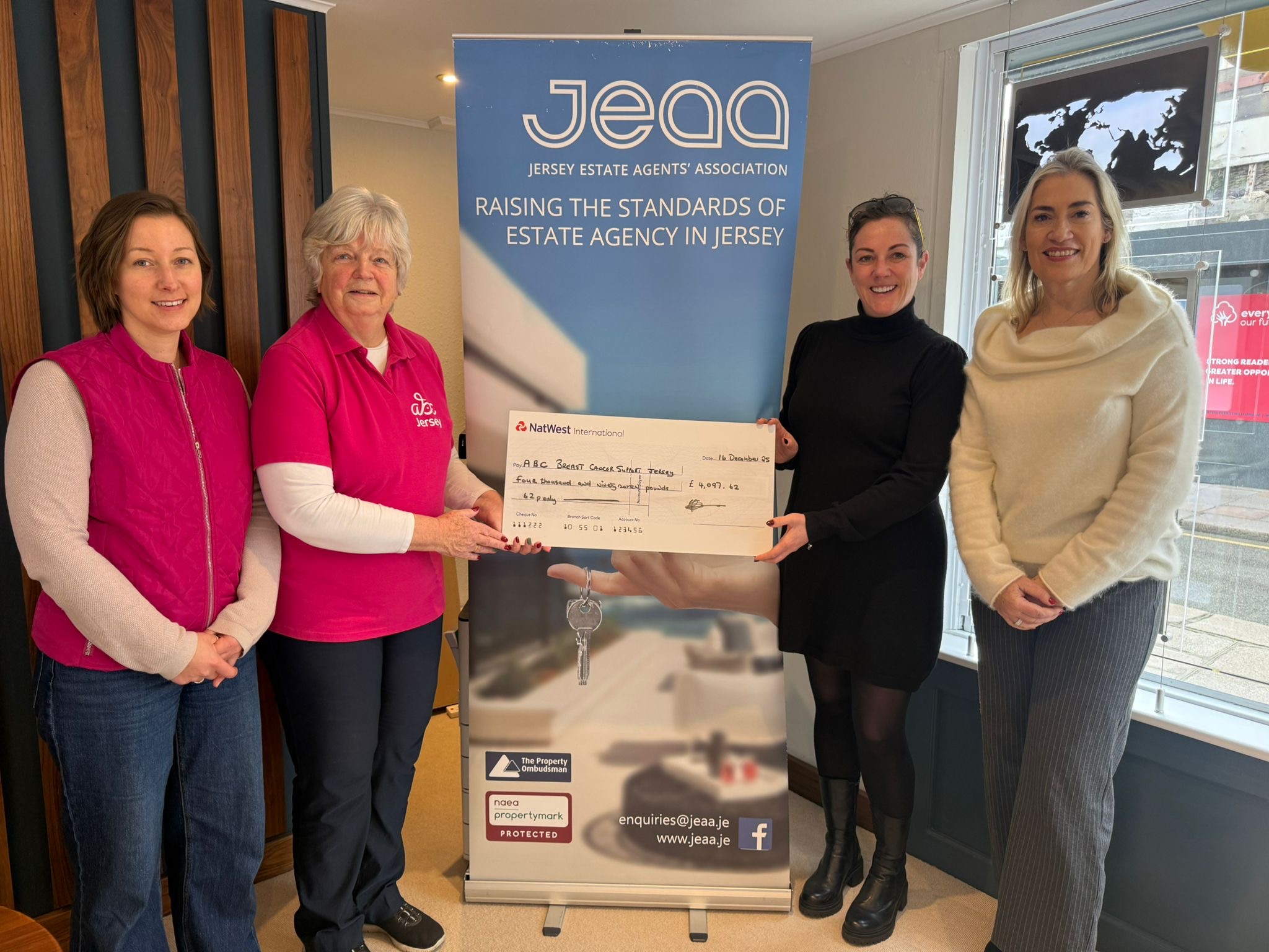 JERSEY ESTATE AGENTS’ ASSOCIATION (JEAA) PRESENT CHEQUES TO ABC BREAST CANCER SUPPORT JERSEY AND FRIENDS OF JERSEY ONCOLOGY (FOJO) AFTER THEIR DIAMOND BALL